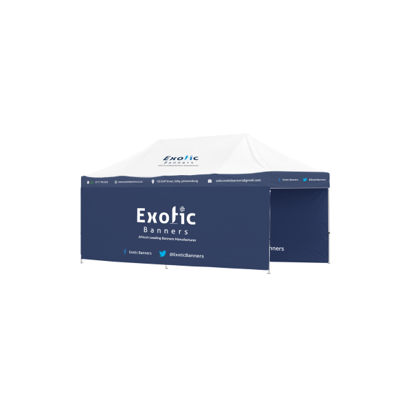 Exotic Banners gazebo measuring 6 meters by 3 meters that has been sublimated . Gazebos are a great addition to any backyard for protecting from the sun and weather, serving as shelter from cool nights and shade during those sunny days. This structure also offers a barrier between your favorite deck or lawn furniture and your pool equipment, patio plants and other outdoor hobby equipment. Make sure you check local regulations before installing a gazebo anywhere.